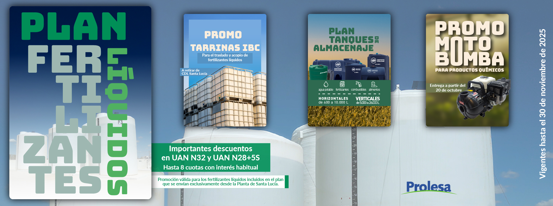 Prolesa presenta la promoción de Tarrinas IBC para productores remitentes a Conaprole. Las Tarrinas IBC son una solución práctica y segura para el transporte y almacenamiento de fertilizantes y productos químicos. Esta promo estará disponible hasta el 30 de noviembre de 2025. Característi…