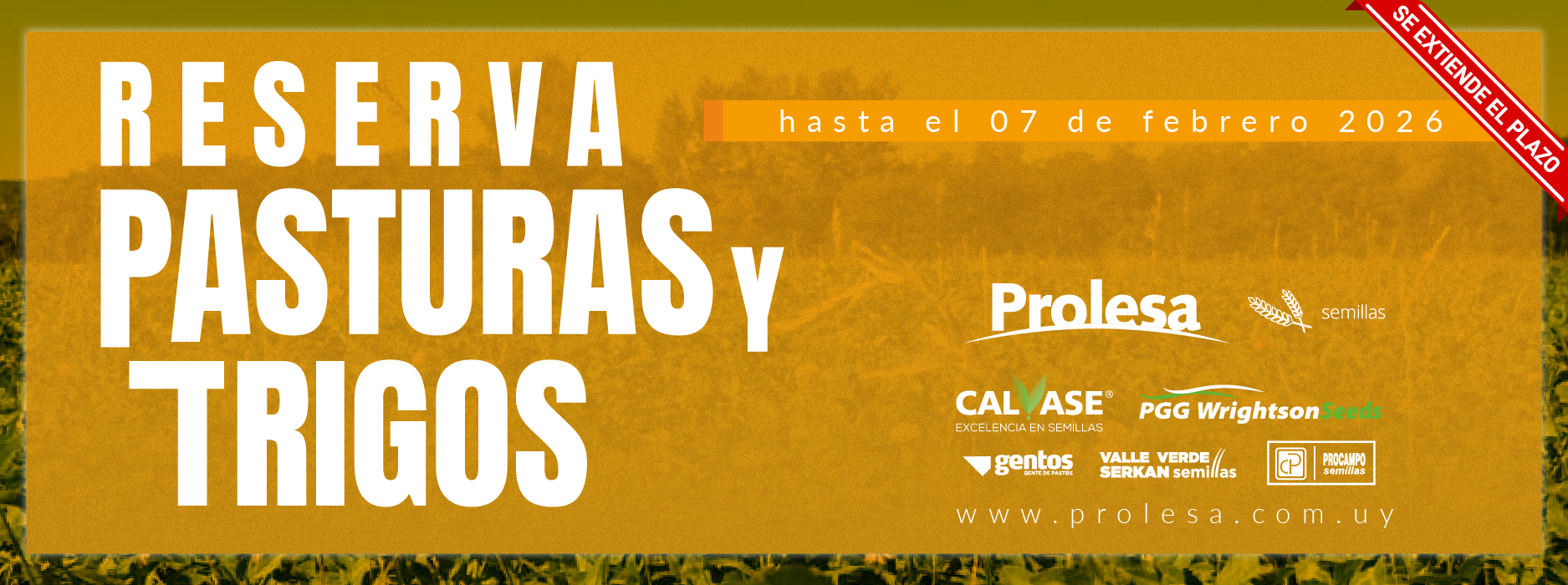 Se extiende hasta el 07 de febrero la Reserva de Pasturas y Trigos correspondiente a la zafra 2025-2026. La oferta comprende una amplia variedad de productos, entre las que se incluyen achicorias, alfalfas, cebadillas, dactylis, festucas, lotus, raigrases perennes, tréboles y trigos de reconocido…