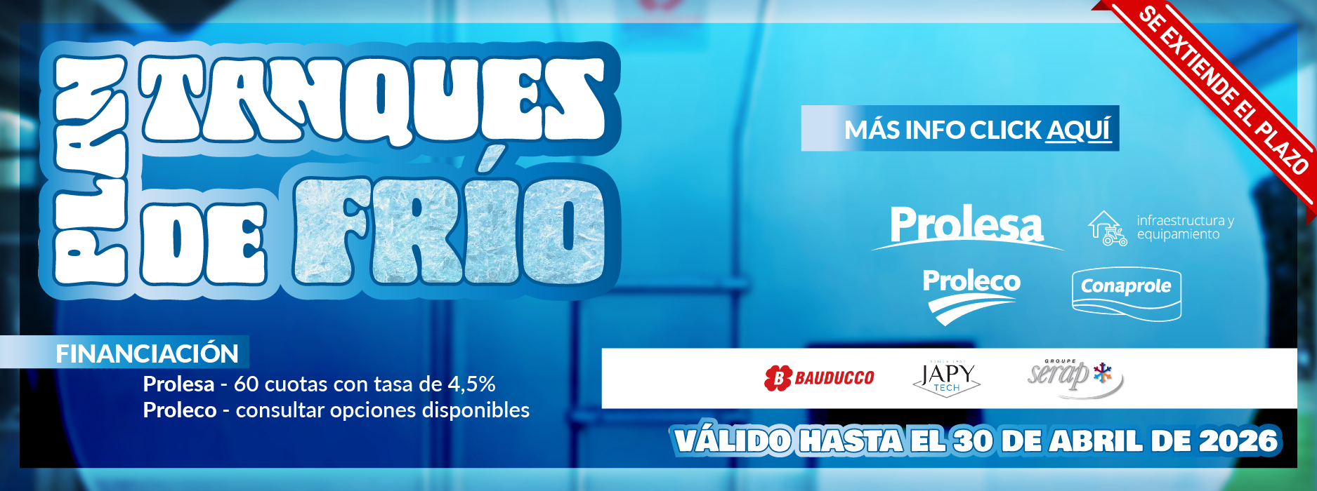Se extiende el Plan Tanques de Frío hasta el 30 de abril 2026. El mismo ofrece una amplia variedad en marcas y modelos para que elija el tanque más adecuado a sus necesidades. La oferta incluye tanques abiertos con lavado manual desde 1.100 a 4.200 litros y tanques cerrados con lavado automático …
