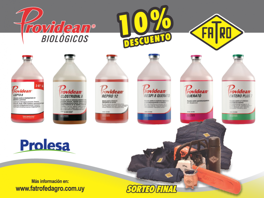 Se trata de un 10% de descuento en la compra de productos de la línea biológicos Providean de Fatro y la participación en un sorteo final de premios (mates, termos, motosierra, chalecos, mamelucos, remeras).